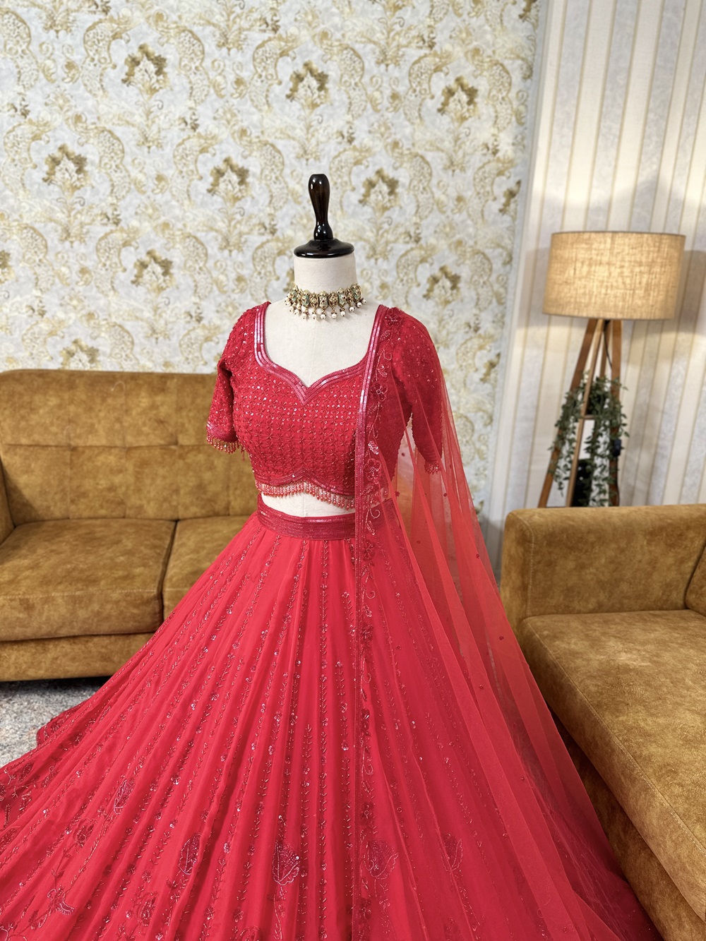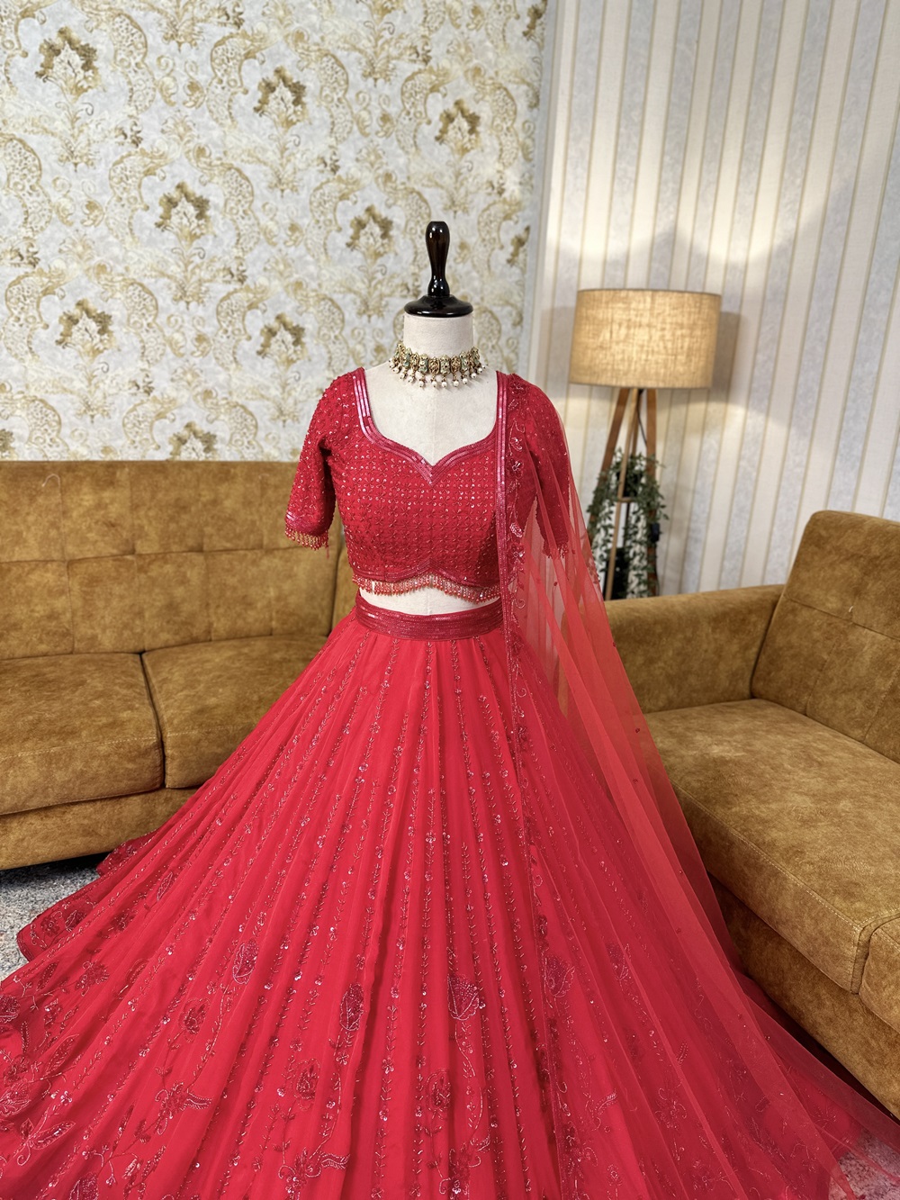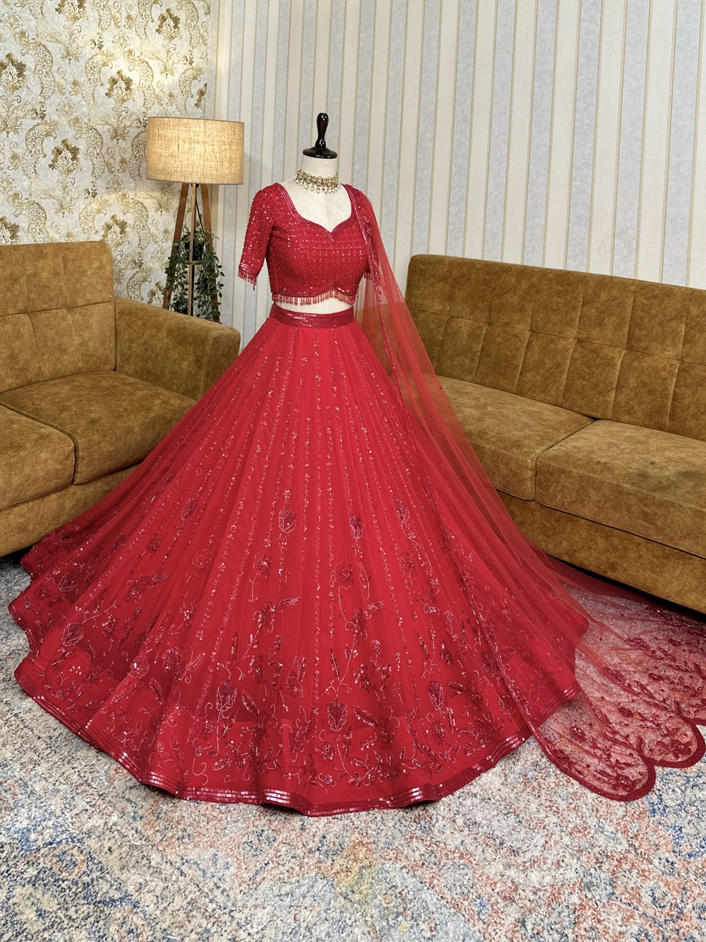 Red – Sequin & Beads Lehenga